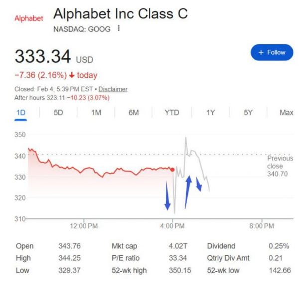 不过话虽如此,财报看上去是全面开花,但谷歌的股票在当天却出现了过山车式的反复震荡:盘后曾跌7.5%,市值瞬间蒸发约3500亿美元,后反弹转涨,盘后一度转涨超4%,市值在数分钟内剧烈波动约8000亿美元,然后又转跌。