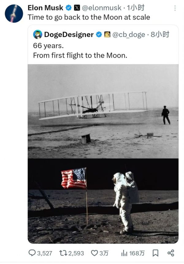 2月8日,马斯克发帖表示,是时候大规模重返月球了。