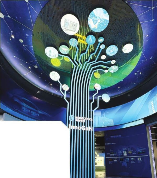 英诺赛科展厅中的“科技之树”,直观呈现了技术的全产业链布局与第三代半导体的创新实力。