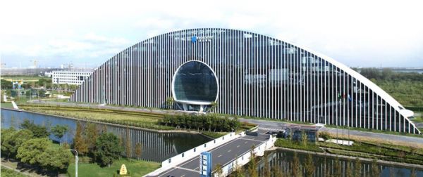 英诺赛科苏州工厂的主建筑,是一幢形似拱桥的白色大楼,楼体中间,镶嵌着一面形如芯片晶圆的玻璃幕墙。晨光中,大楼的影子倒映在河水中,泛起耀眼的波光。简洁优雅的建筑样式与静谧的氛围,让人很难把这座大楼与全球产量最大的8英寸氮化镓芯片生产线联系在一起。