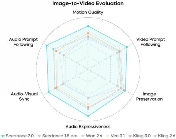 首先来看看Seedance 2.0评测情况,字节联合影视专家构建多模态评测体系,聚焦参考生成、指令响应、运动稳定、镜头语言及音画协同等维度进行了模型评测。
