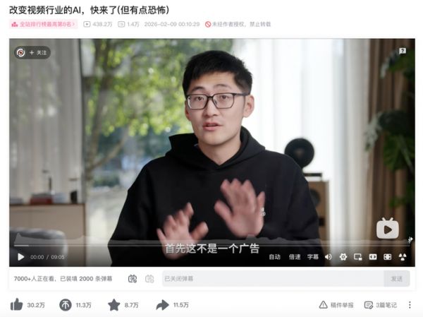 就在该模型亮相次日,知名视频博主、影视飓风创始人Tim(潘天鸿)便发布了针对 Seedance2.0 的实测视频。他在视频中称赞,这一模型在画质、运镜、剪辑衔接和音画同步等方面的表现,足以“改变视频行业”。但与此同时,随着测试深入,Tim 在视频中连续用了六次“恐怖”来形容自己的体验。