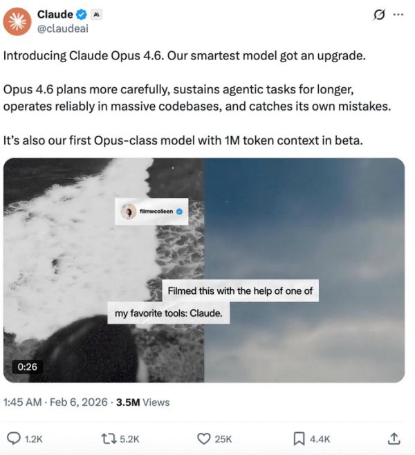 2026年2月6日,Anthropic发布旗舰模型Claude Opus 4.6,是Anthropic首款开启100万token上下文窗口测试功能的旗舰级模型,该模型在长上下文查询、推理、规划等能力上均有所提升。(Claude Opus 4.6杀死编程比赛!挖出500个0day漏洞,生成k线成交量分布,还有PPT直出)
