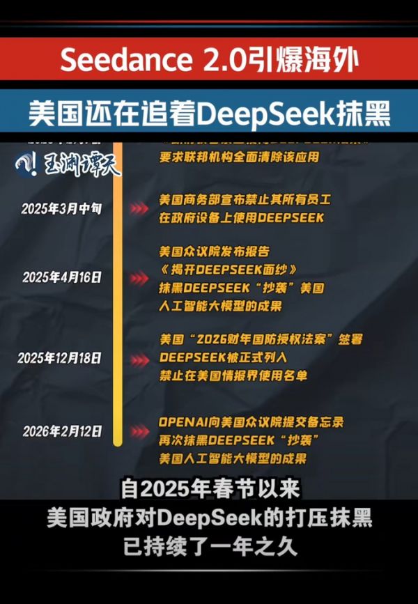 一年了,美国还在追着DeepSeek抹黑,而中国的Seedance已经迭代到2.0版本了。