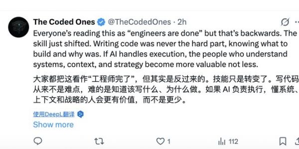 有分析认为,技能只是转变了,懂系统、上下文和战略的人会更有价值。
