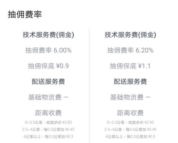 而在江苏宿迁、安徽淮北等地,商家自配送的抽佣费率都快接近20%了。