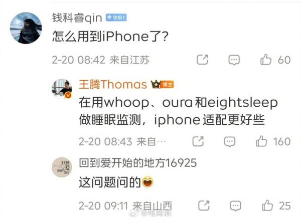 从小米离职半年后,王腾从红米换成苹果了。[doge]