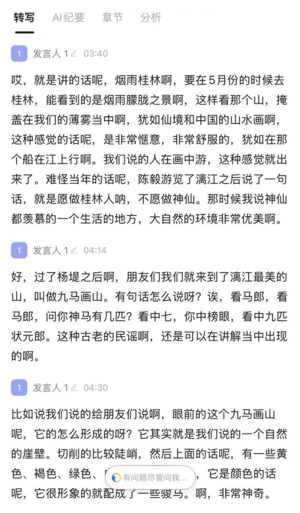 钉钉A1录音卡Lite精准录到了导游的介绍,在后续回查转写的内容时,发现竟然没有一处对话出现混乱,要知道当时的场景音是小孩在旁边疯狂玩闹嬉笑,周边声音一度盖过导游的声音,即便是人耳都难识别准确,钉钉A1 Lite在基础功能上确实没的说。