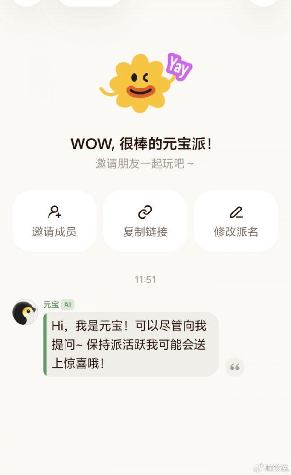 腾讯没有选择直接在微信或QQ中植入元宝,而是单独推出“元宝派”,本身也说明这是一次带有实验性质的尝试——先在相对独立的产品里,验证 AI与真实社交关系融合的边界。