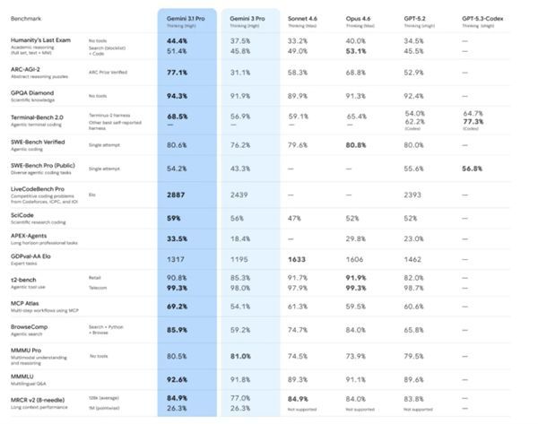谷歌发布Gemini 3.1 Pro:推理性能直接翻倍