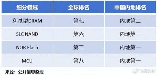 截至2024年底,公司在利基型DRAM领域全球排名第七、中国内地第二;SLC NAND领域全球排名第六、中国内地第一。