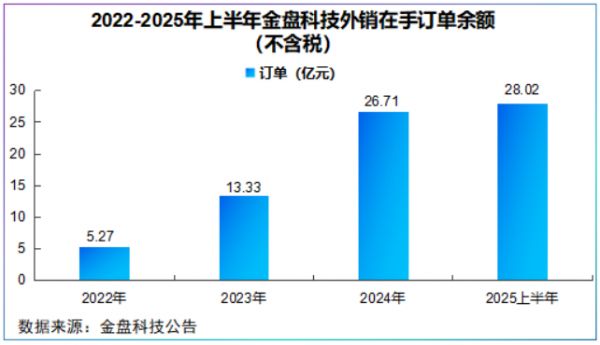 2025年上半年,金盘科技在手订单为75.4亿元,其中内销47.38亿元,外销28.02亿元,较2022年增长了4.3倍,海外成为公司不容忽视的增长极。
