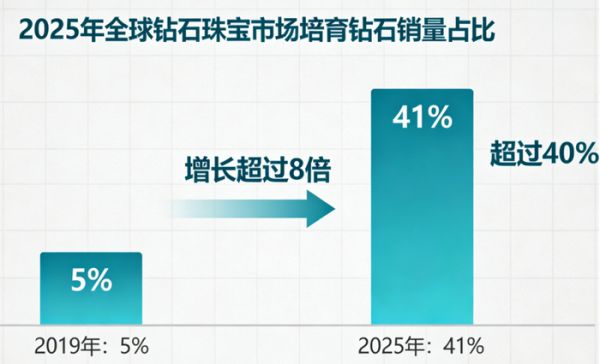 图源:社交媒体宏观数据印证了这一趋势。央视报道显示,2025年,在全球钻石珠宝市场中,培育钻石的销量占比已超过40%,较2019年增长了超过8倍。