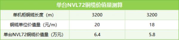 英伟达机柜中的铜缆用量约3200米,距离相当于绕标准操场八圈。以每米二十元的价格计算,单NVL72机柜内高速铜缆价值量约6.4万元!