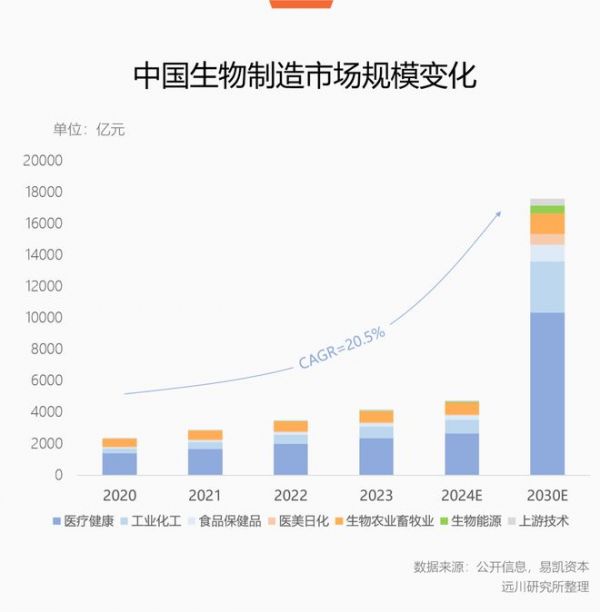 而生物制造正孕育一种全新的工业体系,用基因工程、发酵技术和生物反应器,让细胞生产材料。OECD预计,到2030年全球约60%的化学产品有潜力通过生物制造方式生产。