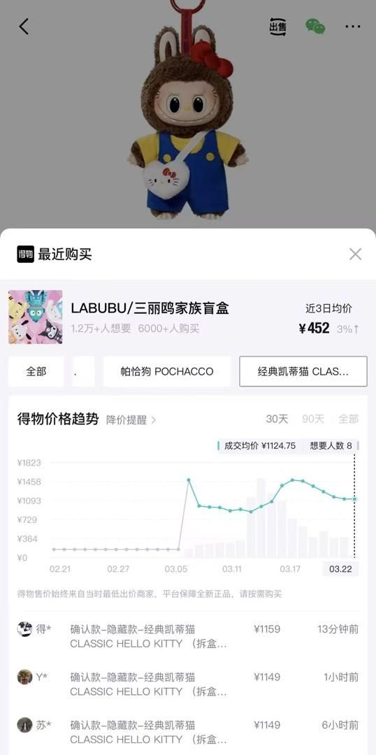 “LABUBU三丽鸥美乐蒂,平出(注:即原价出)”“LABUBU三丽鸥帕恰狗,亏本出145元”“LABUBU凯蒂猫中娃,原价出不包邮”……LABUBU联名三丽鸥上新以来,记者所在的潮玩玩家交流群里,陆续有人原价甚至亏本出产品。
