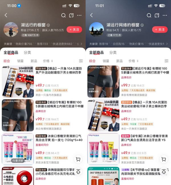 但其实,公司是公司,个人是个人。按正常行情来说,抖音有500万粉丝就能实现基本经济自由,更何况湖远行这种2700W粉丝顶流,个人账号只凭内容收益和直播打赏,就已经足够了,橱窗完全就是额外收入。