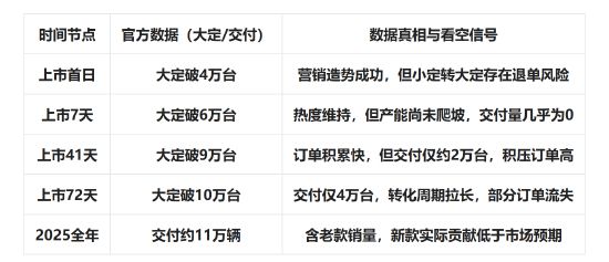 交付滞后:上市72天交付4万台,远低于10万大定的预期。这意味着产能或供应链存在瓶颈,且部分意向客户在等待期内被竞品(如理想L7、小米YU7)截胡。基数效应:2025年M7的“爆款”形象建立在“24小时破4万”的营销事件上,但实际全年11万辆的交付量,在2026年竞品爆发后难以复制。