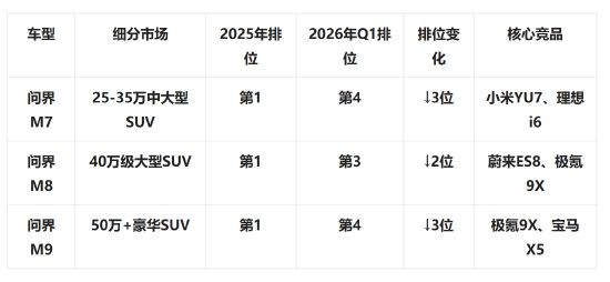 2026年4月:问界M6上市后首月实际交付数据(若低于2万辆,崩盘)。2026年Q1/2财报:毛利率是否因M7/M8降价而下滑。2026年北京车展:极氪9X、蔚来ES8等竞品的市场反馈。