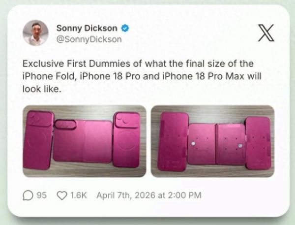 折叠屏 iPhone 和 iPhone 18 Pro 机模同时泄露,外观提前曝光