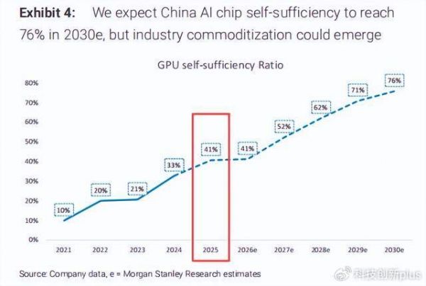 按照机构的预计,2025年时,国产AI芯片已经占到了41%的份额,也就是说到目前,国内AI芯片的自给率,其实已经达到了41%。