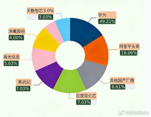再是昆仑芯和寒武纪,份额为7%左右,并列第三名,仅次于华为、阿里。