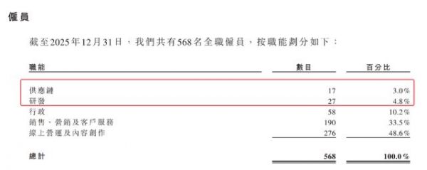 截至2025年末,参半共有568名员工,其中负责线上运营和视频创作的员工达276人,占比接近一半。