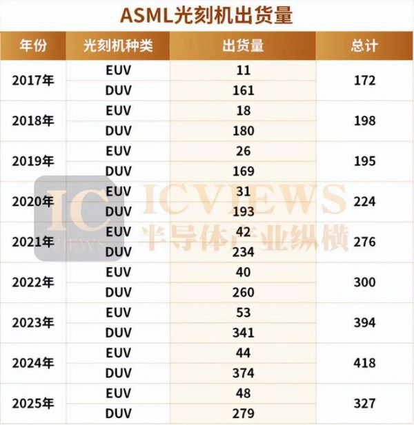 二是2024年出货量较2023年有所下滑,2025年虽有回升但未突破2023年峰值,这背后既有ASML产能调整的因素,也反映出前两年行业扩产潮后,部分企业进入产能消化期,而2025年的回升则与AI驱动下高端存储、先进逻辑芯片的需求复苏直接相关。