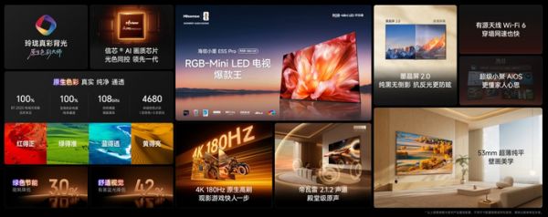 4月22日海信正式发布小墨E5S Pro,主题定位“好电视的新答案”。RGB-Mini LED显示技术首次被下探至4499元起的主流价位段,红绿蓝三原色纯净直出、42%蓝光削减、30%功耗降低,这些原本属于旗舰万元机的技术参数,如今成为四千五百元档位的标配。一个七年销冠的产品线,为什么要下出这么狠的一步棋?