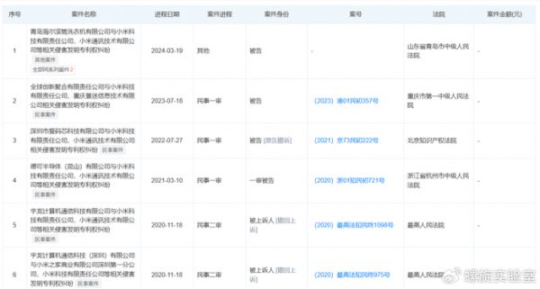 据天眼查数据,小米涉及法律诉讼999+,其中,以被告身份出现的案件有1790件,涉及侵害发明专利的诉讼26起。
