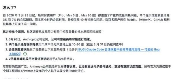 2026 年 3 月,Claude Code 某次更新引发了开发者社区所称的“Tokenocalypse”,从 v2.1.89 版本开始,5 小时限额的消耗速度变成了之前的 3 到 50 倍,Max 20x 用户最快 70 分钟就耗尽了全部配额。