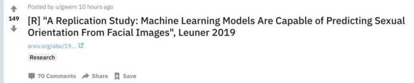 “机器学习预测性取向”一直是一个较为“敏感”的话题。这篇论文的发布,如同 2017 年斯坦福的研究一样也在 reddit 上引起了大家广泛的讨论,感兴趣的同学可查看 Reddit 原帖: