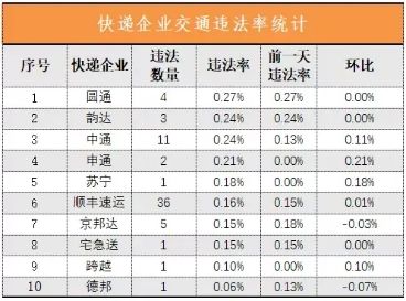深圳交警曝光了交通违法率较高的快递、外卖企业。