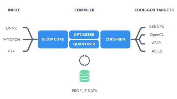 ASIC 不运行通用代码,因为它们需要特定的编译器才能将图转化为在这些加速器上执行的指令。Glow 编译器的目标是将供应商的特定硬件从更高级的软件堆栈中抽象出来,使基础设施不受供应商限制。它接受来自框架(如 PyTorch 1.0)的计算图,并为这些机器学习加速器生成高度优化的代码。
