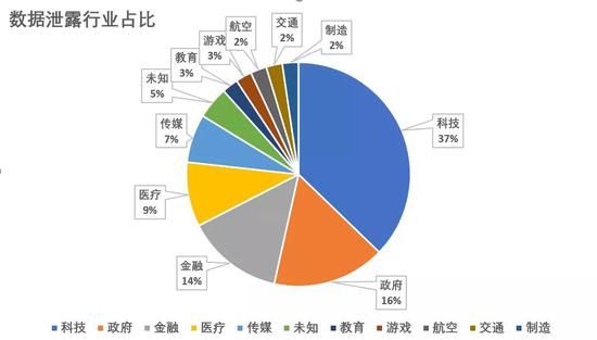 在所有的数据泄露事件中,科技行业数据泄露事件最多,占比为37%,相当惊人。众所周知,科技行业是信息化、数字化程度最高的行业,善于利用数据,发挥数据价值,因此其拥有的数据更完善、颗粒度更细、价值更大。