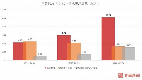 数据来源:年报、界面新闻研究部 此外,甚至连其活跃用户体量也逐年下滑。2018年,活跃用户总数3.32亿,相比2016年的4.5亿下滑26.22%,同时净利润亏损达1.25亿元。