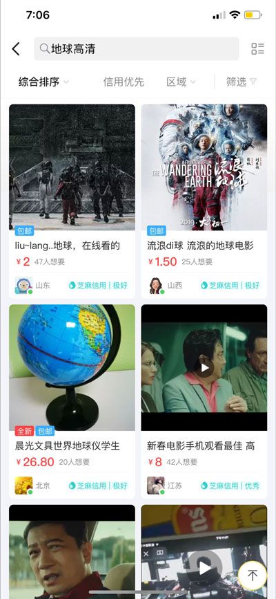 观察者网10日傍晚在闲鱼平台搜索发现,使用“地球高清”等词语,确实能搜到贩卖盗版《流浪地球》的信息。