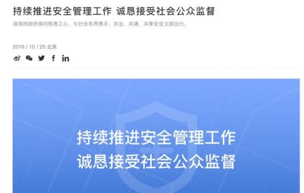 面对社会和政府管理部门的压力,滴滴表示不再以增长为目标,要“all in”安全。中国网约车行业从野蛮生长时期进入到了一个新的安全合规营运阶段。经过一年的整改,2019年10月25日,滴滴发布了《持续推进安全管理工作、诚恳接受社会公众监督》,应该算是一份滴滴版的综合性安全报告。