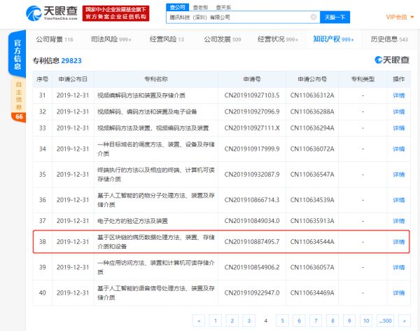网易科技讯 1月7日消息 天眼查数据显示,近日,腾讯科技(深圳)有限公司新增多条与区块链相关的专利信息,其中多条与区块链落地应用相关,如“基于区块链的借贷信息处理方法、装置、设备和存储介质”和“基于区块链的病历数据处理方法、装置、存储介质和设备”。