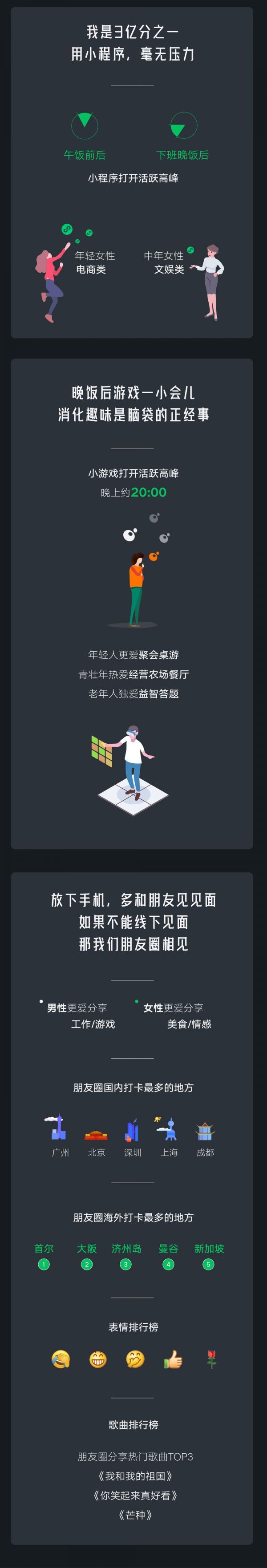 朋友圈国内打卡最多的城市是:广州、北京、深圳、上海、成都。