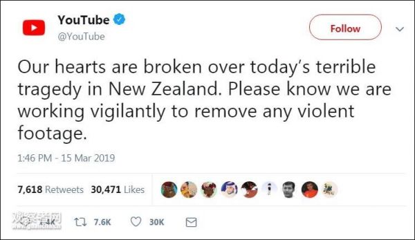 但此时已经晚了,已有大量的视频流入Youtube。后者在事发后回应,“会谨慎删除所有的暴力视频。”