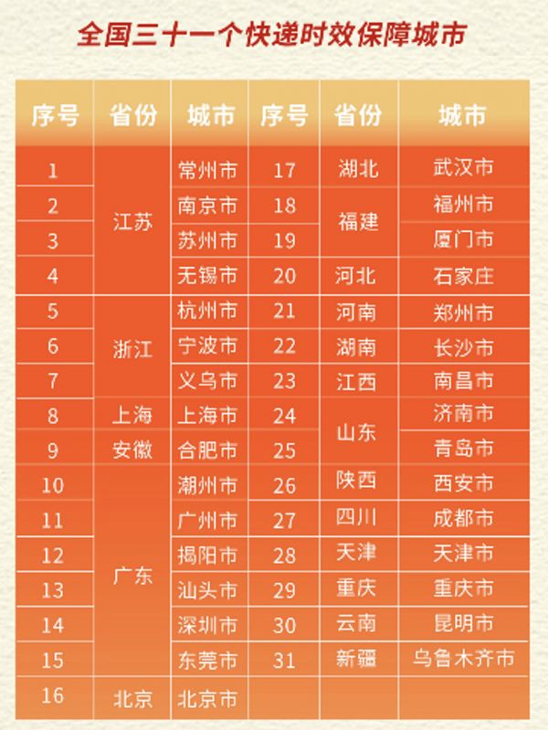 需要注意的是,圆通对30个城市作出时效承诺,具体时效及收派范围可于当地所属分公司咨询。