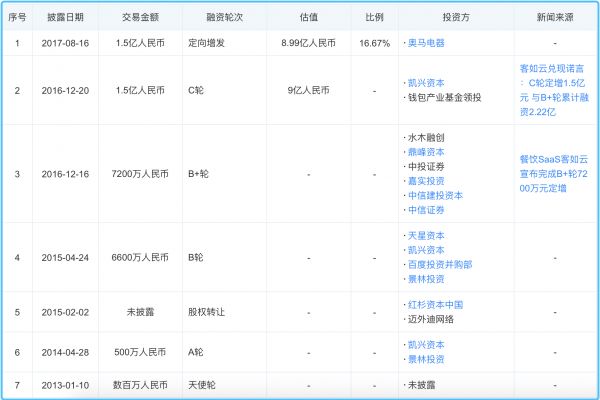 客如云融资历史(图片来源:天眼查)