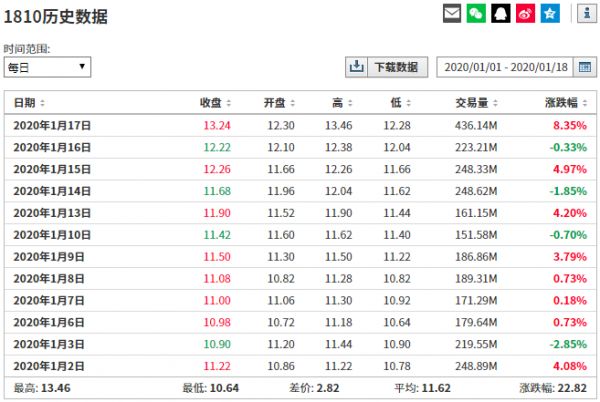 2019年11月25日以来,不到两个月时间小米股价上涨近60%;若只看2020年开年至今的12个交易日,小米股价也累计上涨了近23%。