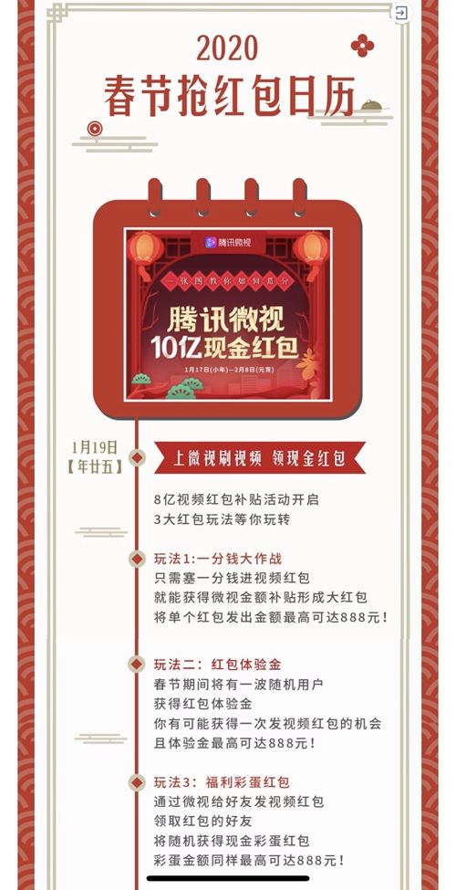 10亿补贴三种玩法,腾讯微视加入春节红包大战