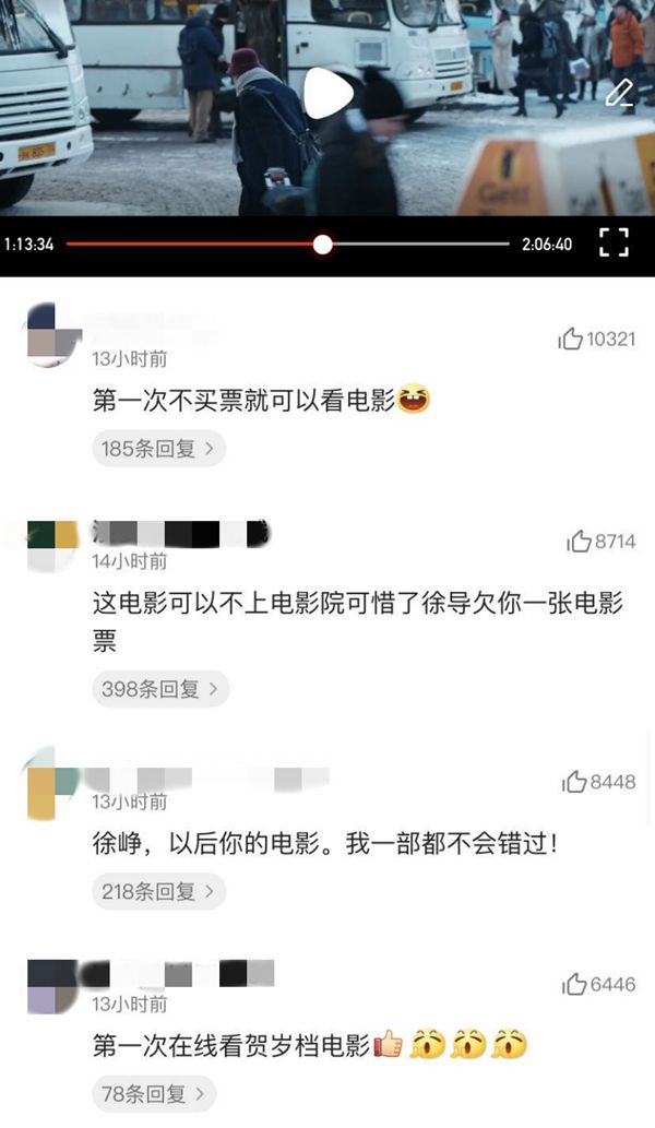不过如果看各个播放平台的评论区,观看电影的人们对电影态度依然十分友好和欢迎。大多都是表达大年初一能够看到新电影的欢喜和感谢,不少观众纷纷表态,“欠徐峥一张电影票。”