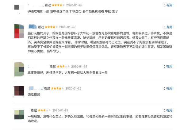通常来说,评价比较苛刻的豆瓣,也能看到许多观众,虽然对影片的观感并不算满意,但打起分来,也都因为春节能够在家看的“善举”手下留情。
