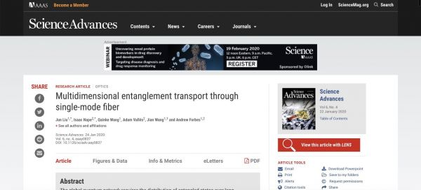 钛媒体快讯 | 1月26日消息,近日,南非约翰内斯堡的金山大学(WITS)物理学院安德鲁·福布斯(Andrew Forbes)教授和他的团队,以及中国武汉的华中科技大学光电子科学与工程学院王健(Jian Wang)带领的团队共同提出,全球量子网络需要长距离分布纠缠态,可以通过一条传统的光纤链路,就能实现多维纠缠传输模式的新方法,这将有助于在传统网络中跨传统光纤进行部署。该项研究成果于1月25日登在了知名科学期刊《Science Advances》(科学进步)上。