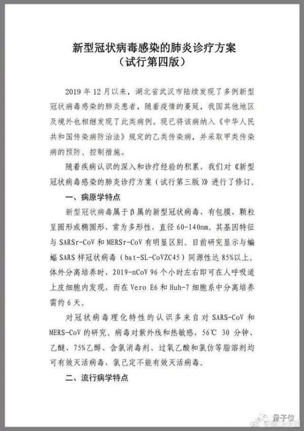 今天上午,国家卫健委与国家中医药管理局公布《新型冠状病毒感染的肺炎诊疗方案(试行第四版)》,其中有一则信息引起了广泛的关注。