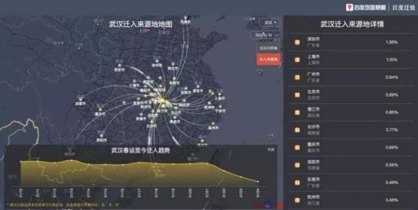 (图片说明:春运期间迁入武汉的热门城市,图片来源:百度迁徙)